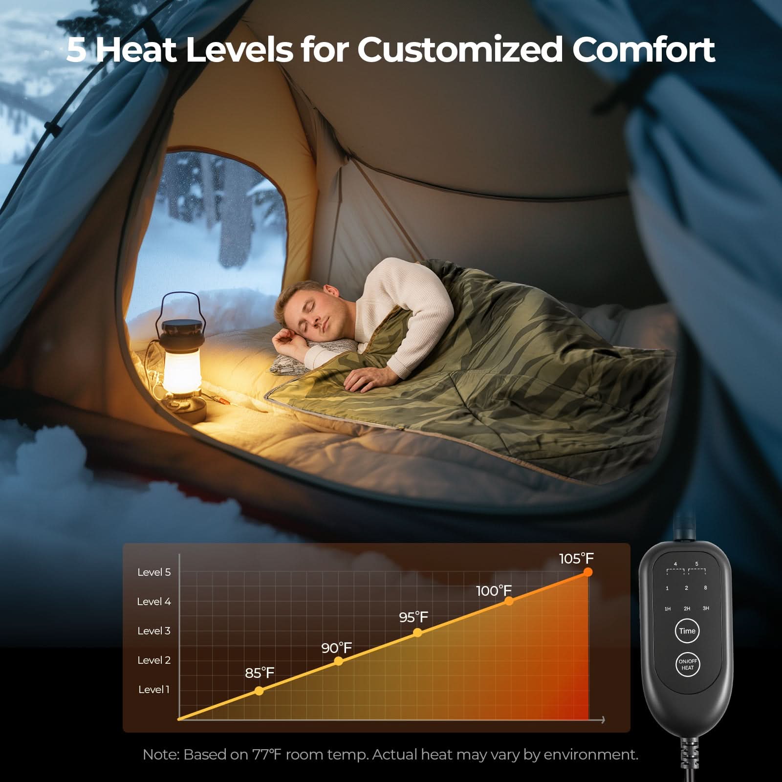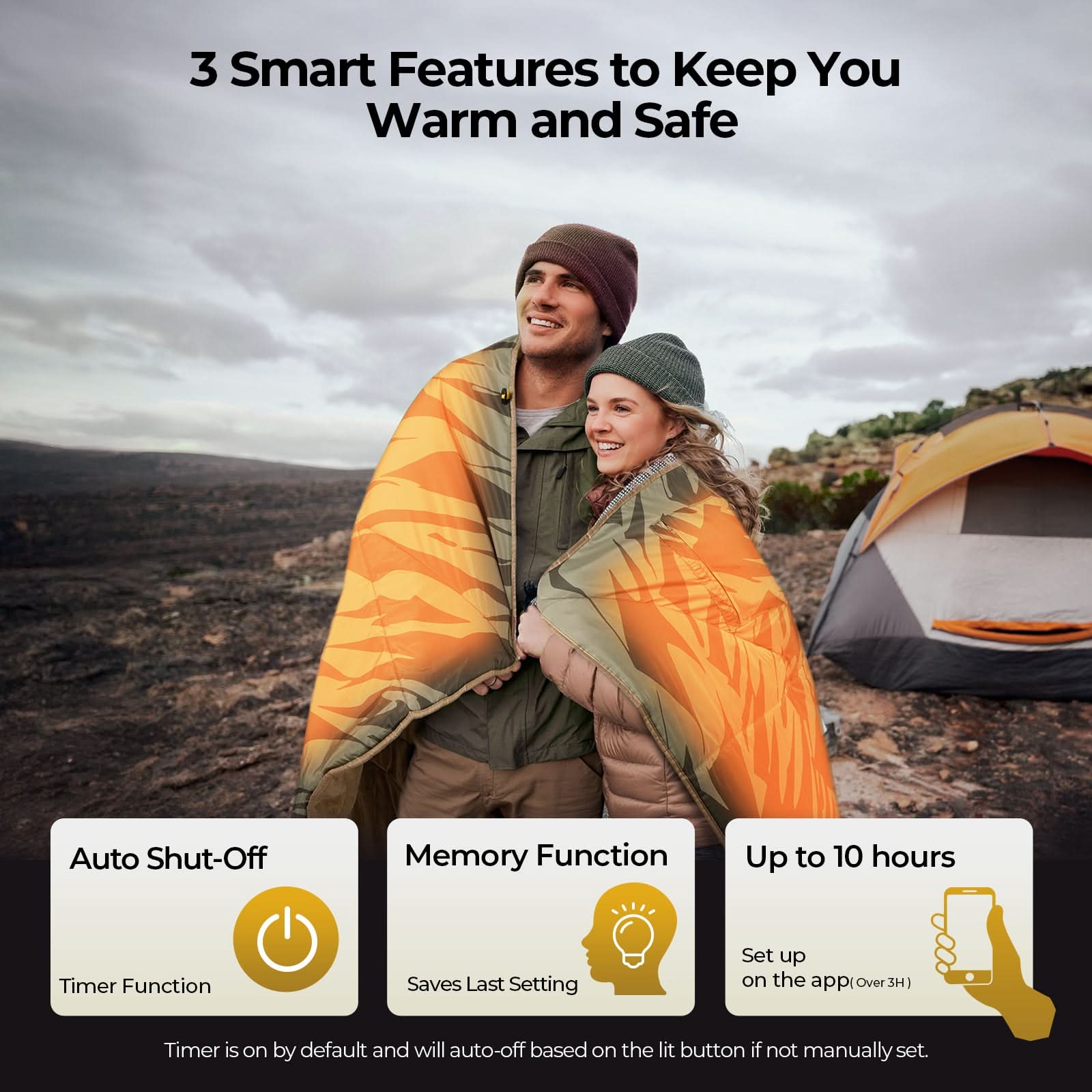 BougeRV 12V Outdoor Heated Blanket-5 Heat Settings, APP Remote Control(Green)